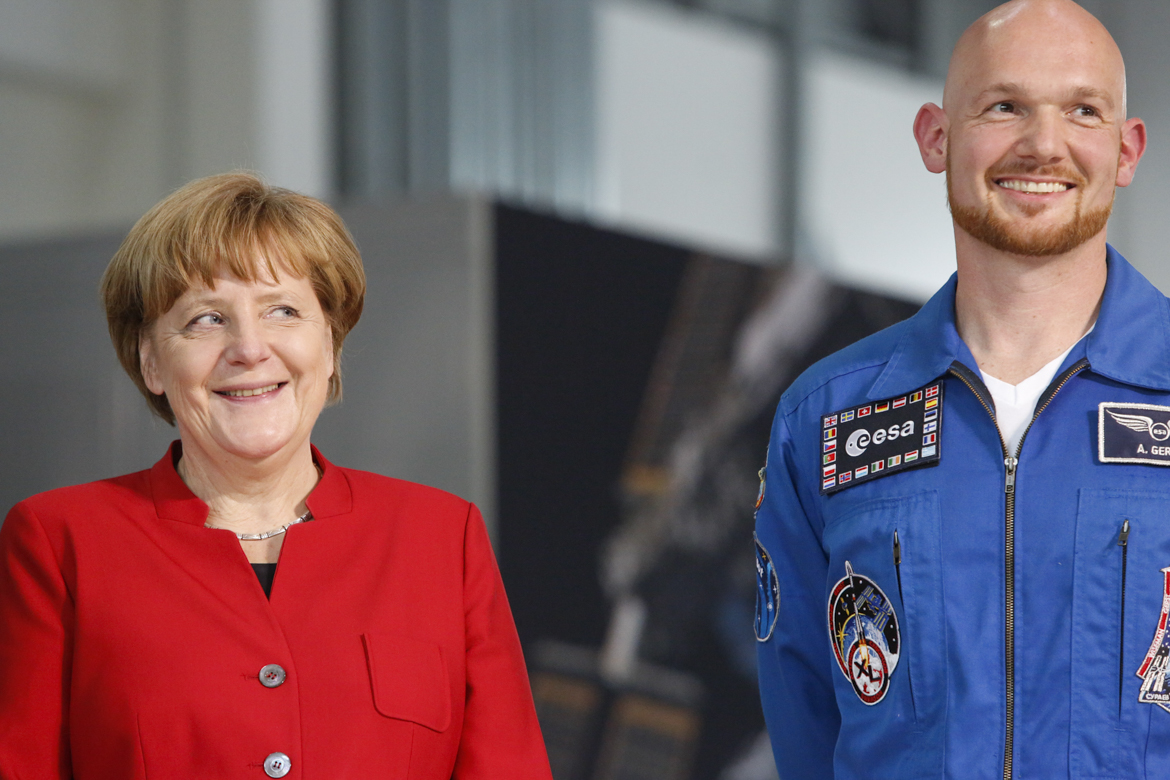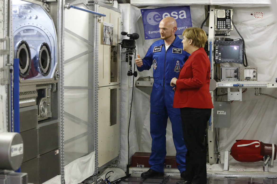 Angela Merkel trifft Alexander Gerst bei der esa in Köln